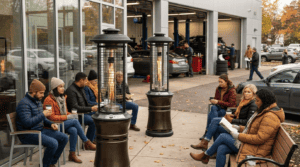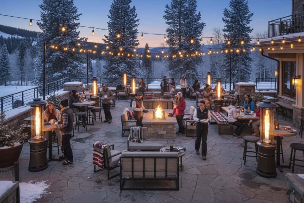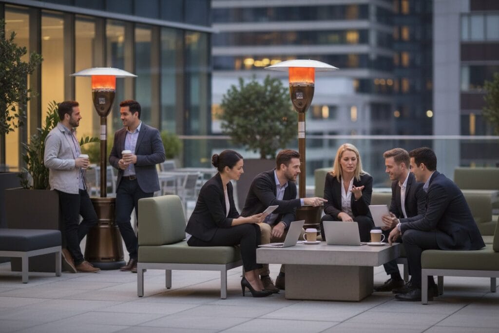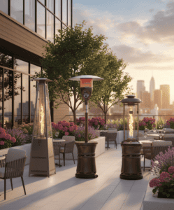 The images on this page are generated using AI to help you visualize how our patio heaters can enhance a variety of outdoor environments